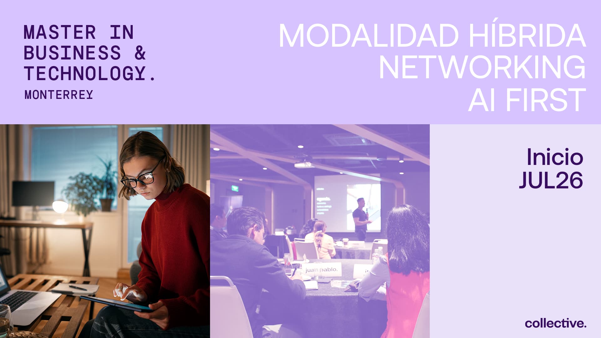 El Master in Business & Technology (MBT) de Collective no es solo un programa académico; es un ecosistema de aceleración para líderes que buscan capitalizar la disrupción tecnológica. A través de la experiencia directa de nuestros aprendedores, integramos herramientas de vanguardia, pensamiento sistémico y una red de contactos de alto nivel en la toma de decisiones estratégica para una transformación profesional visible.
